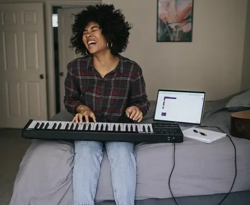 Nous encourageons les débutants à commencer avec l’instrument dont ils disposent déjà, même s’il s’agit d’un petit clavier simple ou d’un synthétiseur Cette phase permet de se faire un avis, sans pression, pour mieux se décider ensuite.